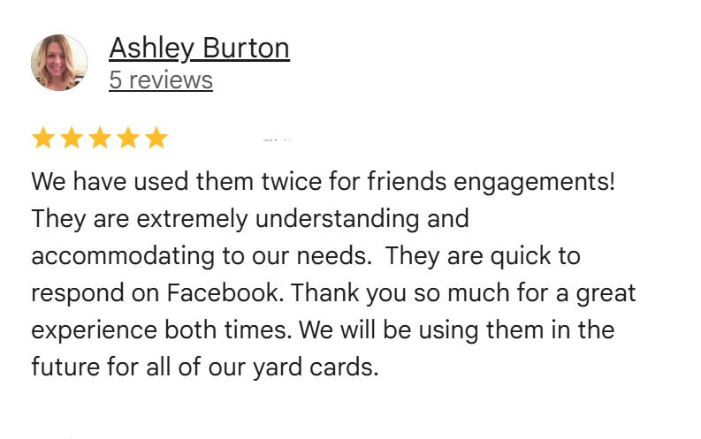 We work with your theme and custom design your yard card setup....