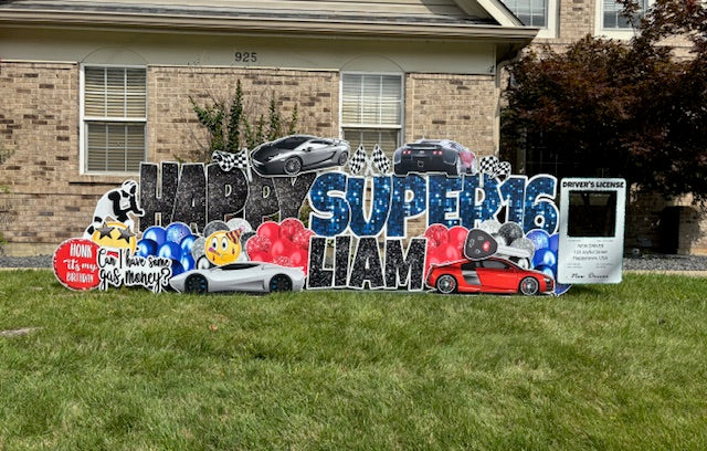 The Super 16 Birthday card set comes with matching balloons, gifts and other flair. Then choose your special theme to complete the setup.